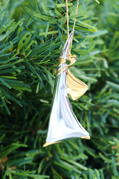 Cazenovia Abroad's Rhodium Angel is perfect for anyone who has a modern style but will enjoy the classic angel design. The ornaments bright luster will shine like a bright light and attract any eyes to it. It can be worn as a pendant or hung from a tree.