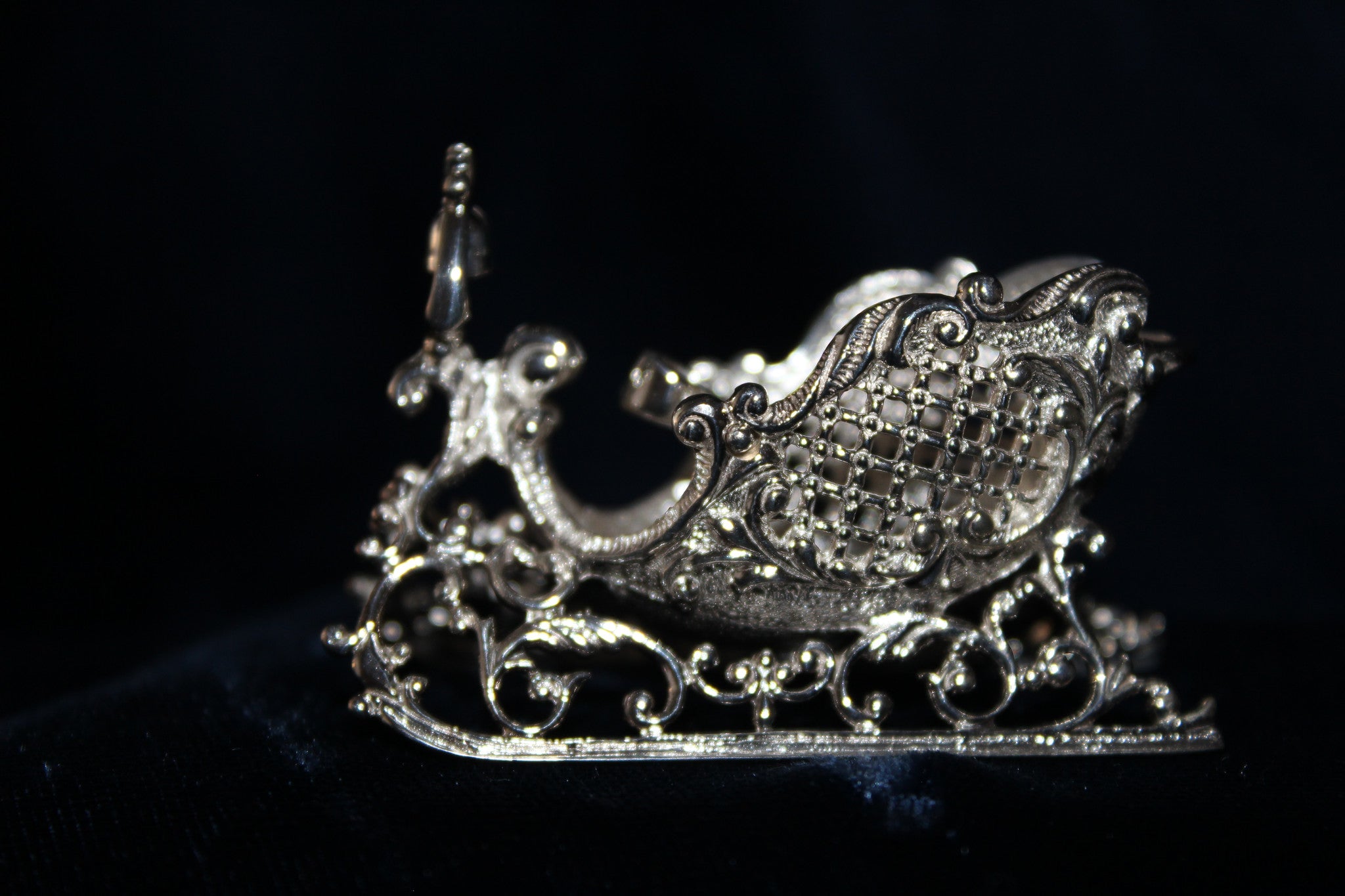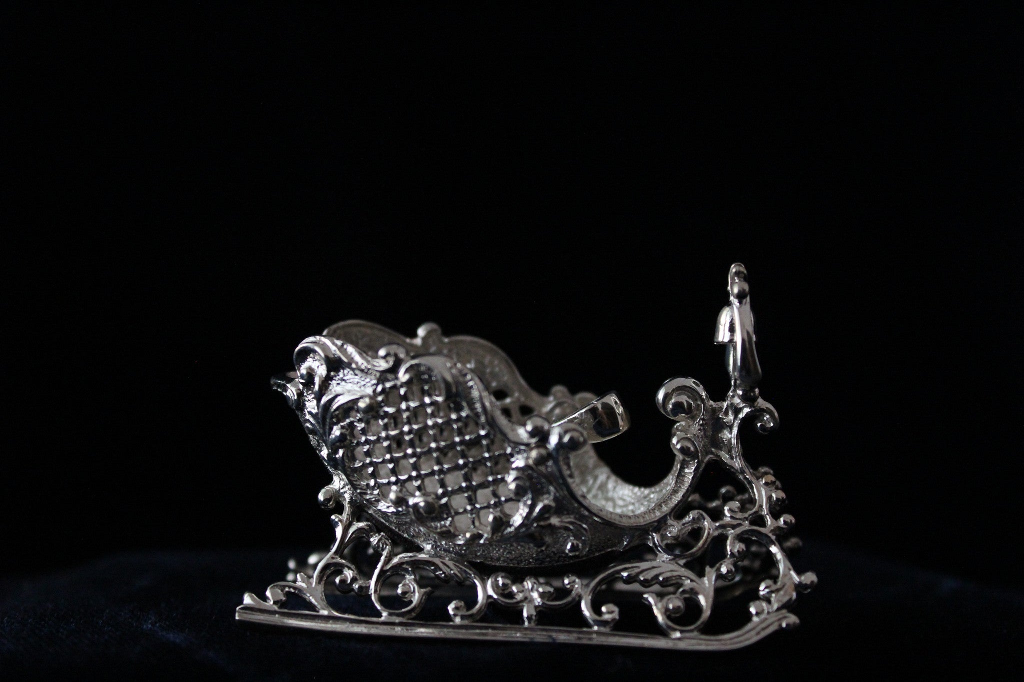 The Sleigh might be one of the most detailed ornaments Cazenovia Abroad has ever produced. Do not let the craftsmanship and ornateness of The Sleigh fool you. This piece is strong and of the same high quality silver you come to expect from all of our ornaments.