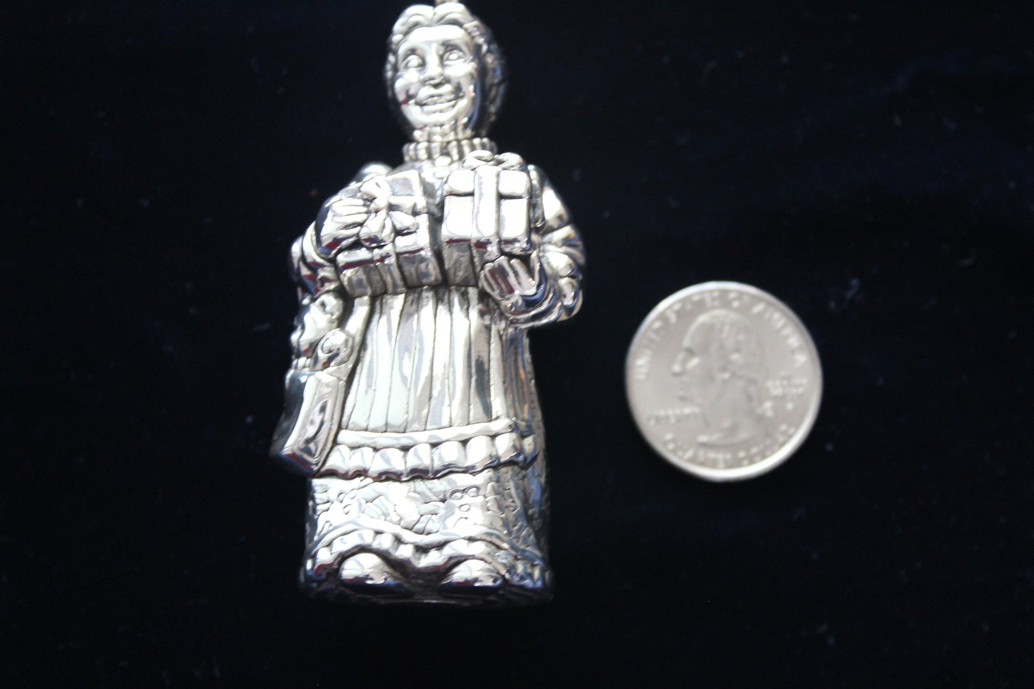 Mrs. Claus is created with some of the world's finest silver, and crafted by the best silversmiths in the USA.